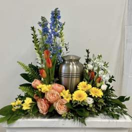 Price: $210.00Sunset Memories Cremation Urn Arrangement by Westford Florist Art by Veny