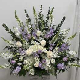 Price: $299.00Lavender Serenity Standing Spray by Westford Florist Art by Veny